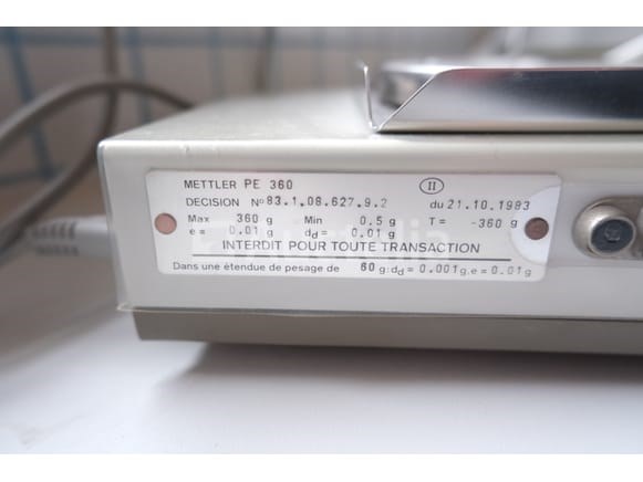 Digitale Weegschaal Merk: Mettler Model: PM360 Spanning: 230V Mono Status: Functioneel op Inventarisatiedag