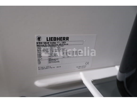 Koelkast Merk: Liebherr Model: KSN 3545 Spanning: 230V Mono Lengte: 65 cm Breedte: 61 cm Hoogte: 170 cm Capaciteit: 342 liter Status: Functioneel op Inventarisatiedag Niet inbegrepen: Inhoud