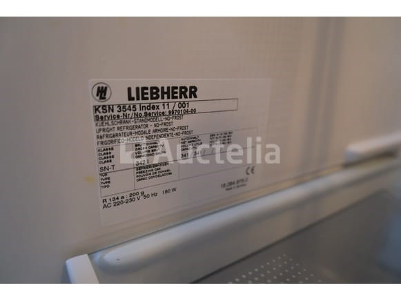 Koelkast Merk: Liebherr Model: KSN 3545 Spanning: 230V Mono Lengte: 65 cm Breedte: 61 cm Hoogte: 170 cm Capaciteit: 342 liter Status: Functioneel op Inventarisatiedag Niet inbegrepen: Inhoud