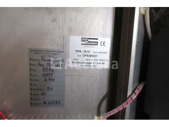 Jaar: 2014 Spanning: 400V driefasig Lengte: 145 cm Breedte: 45 cm Hoogte: 117 cm Vermogen: 4 kW Conditie: Niet getest