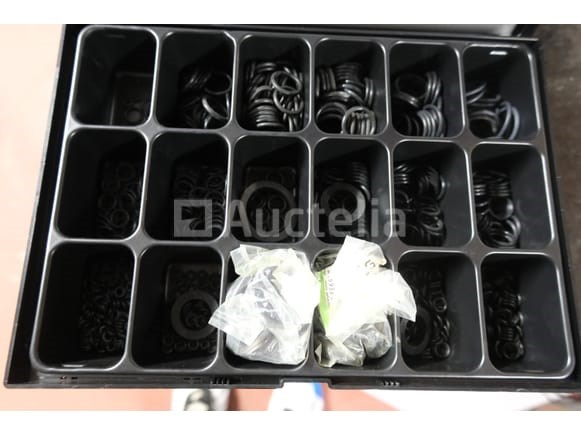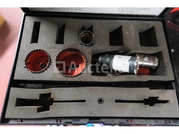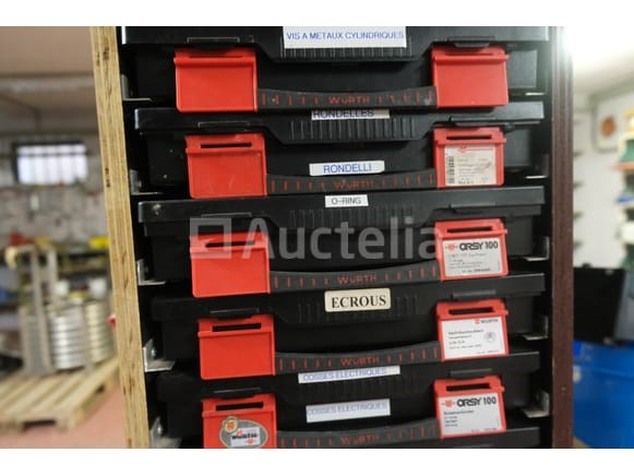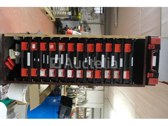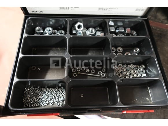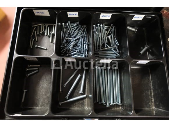 Gereedschapskoffer met inhoud Hoeveelheid: +/- 12 Inbegrepen: Houten rek +/- 12 koffers Inhoud van diverse schroeven en beslag