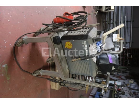 Lasmachine Merk: Elektra Beckum Model: SB 260 Spanning: 400V driefasig Lengte: 95 cm Breedte: 55 cm Hoogte: 110 cm Conditie: Niet getest Geleverd met ondersteuningstrolley, grondklem, lans, masker en verbruiksartikelen balanshoud.