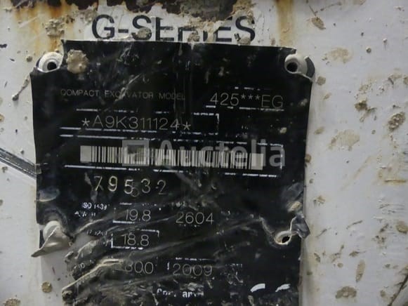 Mini rupsgraafmachine Merk: Bobcat Model: 425 EG Jaar: 2009 Openingstijden: 5117 Lengte: 435 cm Breedte: 155 cm Hoogte: 240 cm Gewicht: 2700 kg Vermogen: 20 kW Getest: Nee Staat: te worden opgeknapt Serienummer: A9K311124 Het startte niet tijdens het inventariseren, veroorzaakte een lege batterij Voorzien met: +- 3 emmers 1 rotsbreeker Bekende defecten: De giek van de hydraulische arm is gebroken (te vervangen) Aanbevolen bezoek Opmerkingen: Bezoek en afhalen op afspraak