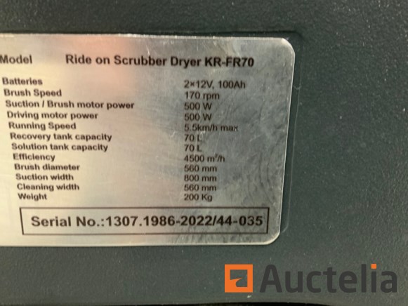 Working width: 560 mm Squeegee width: 800 mm Working capacity: 3500 m²/h Disc brush: 1/560 Ømm Disc brush rotations: 200 RPM Brush motor: 24 V / 550 W Maximum pressure on the brushes: 23 KG Traction motor: 24 V / 500 W Traction wheel: 2 / 225 Ømm / 64 mm Maximum forward speed: 0-5.5 km/h Maximum gradient with full load: 10 % Suction vacuum: 1 / 24 V / 500 W Solution tank: 700 Mbar Front elastic wheel: 175 Ømm / 60 mm Solution tank: 70 L Recovery tank: 70 L Steering diameter: 1980 mm Machine length: 1265 mm Machine length with optional item-holder tray: 1320 mm Machine height: 1030 mm Machine height with optional blinking light kit: 1230 mm Machine width (without squeegee): 600 mm Machine width (without squeegee) with optional tool-holder kit: 630 mm Battery compartment (L*W*H): 362x354x290 mm Rated battery voltage: 12 V / 100 Ah Battery weight (max): 80 KG Machine weight (empty and without batteries): 110 Kg Gross weight in running order (machine + batteries + water + operator): 220 Kg Pressure level: 65 dB (A)