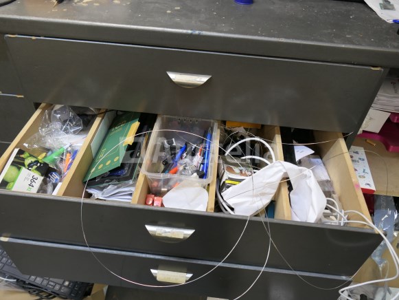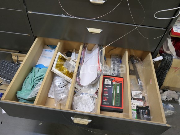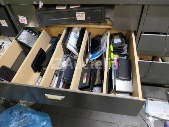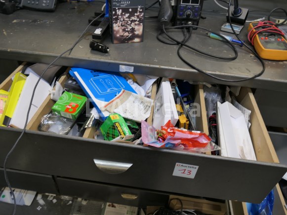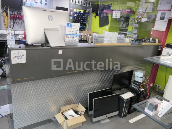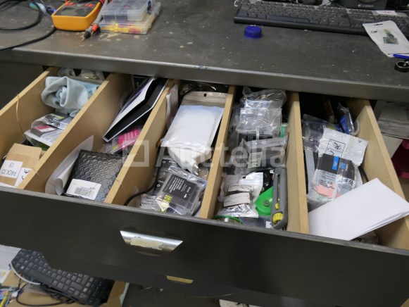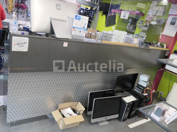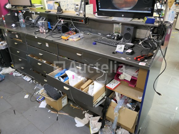 Inbegrepen: Materiaalinhoud, Gereedschap Inhoud van de lades Niet inbegrepen: De 2 pc-schermen, toren, toetsenbord, labelprinter, kassa. Computerapparatuur voor de toonbank Werkbankafmetingen: +- 315 cm x +- 67 cm x +- 126 cm Opmerkingen: Aanbevolen bezoek