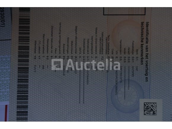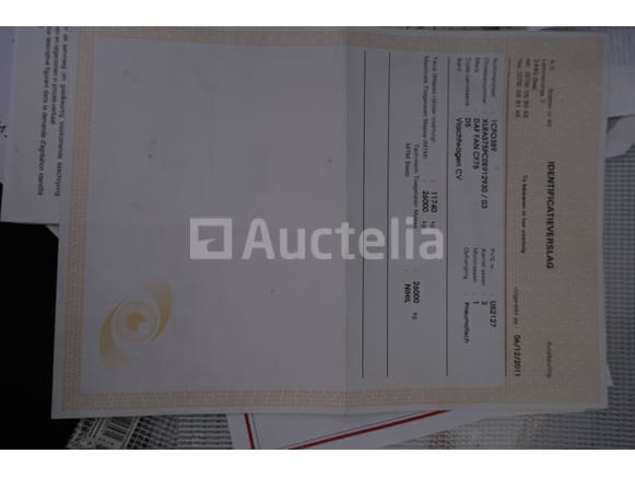 Containervrachtwagen Merk: DAF Model: FAN CF85 Jaar: 2011 Kilometerstand: 462883 Vermogen: 183 kW Datum van eerste inschrijving: 14-11-11 Brandstof: Diesel Verplaatsing (cc): 9186 Versnellingsbak: Automatisch MMA: 26.000 kg Tare: 11740 kg Ophanging: Pneumatisch Radio: Ja Aantal toetsen: 1 Aantal zetels: 2 Certificaat van conformiteit: Ja Technisch keuringscertificaat: Ja Technisch keuringscertificaat geldig tot: 25-06-12 Registratiecertificaat Deel 1: Ja Registratiebewijs Deel 2: Ja Vrachtwagengegevens: Ja Identificatierapport: Ja Voertuig nog in gebruik (kilometerstand verandert): Nee Chassisnummer: XLRAS75PC0E912930 Eurostandaard: 5 Intern verkopersnummer (Ref): 7179 Staat: te worden opgeknapt Aanwezigheid van slagen, krassen en oxidatie door normale slijtage Ik begon met booster bij het inventariseren Geleverd zonder kenteken Opmerkingen: Het voertuig is tijdens de inventarisatie niet grondig geïnspecteerd en kan niet-zichtbare gebreken vertonen De koper zou het perceel vóór de veiling hebben bezocht om de afhandeling en logistiek te plannen die nodig zijn voor het innen van zijn aankoop
