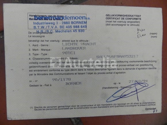 Voorouder 4X4-auto Merk: Land Rover Model: 90CTX Jaar: 2004 Kilometerstand: 214074 Datum van eerste inschrijving: 22-04-04 Brandstof: Diesel Versnellingsbak: Handgeschakeld MMA: 26.000 kg Eigengewicht: 12190 kg Ophanging: Pneumatisch Aantal sleutels: 0 Aantal zetels: 2 Certificaat van conformiteit: Ja Inspectiecertificaat bij de technische inspectie: Nee Registratiecertificaat Deel 1: Ja Registratiecertificaat Deel 2: - (oud model) Technische gegevens: Ja Identificatierapport: Ja Voertuig nog in gebruik (kilometerstand verandert): Nee Chassisnummer: SALLDVAF8MA953217 Intern verkopersnummer (Ref): 1743 Getest: Nee Staat: te worden opgeknapt Geleverd zonder kenteken Geen sleutel verstrekt Niet rijden bij het ophalen Bezoek wordt sterk aanbevolen Opmerkingen: Het voertuig is tijdens de inventarisatie niet grondig geïnspecteerd en kan niet-zichtbare gebreken vertonen De koper zou het perceel vóór de veiling hebben bezocht om de afhandeling en logistiek te plannen die nodig zijn voor het innen van zijn aankoop