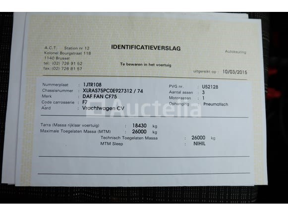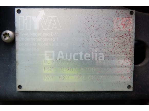 Vuilniswagen Merk: DAF Model: FAN CF75 Jaar: 2012 Kilometerstand: 462885 Vermogen: 231 kW Datum van eerste inschrijving: 08-06-12 Brandstof: Diesel Verplaatsing (cc): 9186 Versnellingsbak: Automatisch MMA: 26.000 kg Eigengewicht: 18430 kg Ophanging: Pneumatisch Radio: Ja Achteruitrijcamera: Ja Aantal toetsen: 1 Aantal zetels: 2 Certificaat van conformiteit: Ja Technisch keuringscertificaat: Ja Technisch inspectiecertificaat geldig tot: 26-10-03 Registratiecertificaat Deel 1: Ja Registratiebewijs Deel 2: Ja Vrachtwagengegevens: Ja Identificatierapport: Ja Voertuig nog in gebruik (kilometerstand verandert): Nee Chassisnummer: XLRAS75PC0E927312 Eurostandaard: niet bekend Intern verkopersnummer (Ref): 7755 Getest: Nee Staat: te worden opgeknapt Aanwezigheid van deuken, krassen en oxidatie door standaard slijtage Ik begon met booster bij het inventariseren HMF 2120S kraan, jaar 2012 Geleverd zonder kenteken Opmerkingen: Het voertuig is tijdens de inventarisatie niet grondig geïnspecteerd en kan niet-zichtbare gebreken vertonen De koper zou het perceel vóór de veiling hebben bezocht om de afhandeling en logistiek te plannen die nodig zijn voor het innen van zijn aankoop