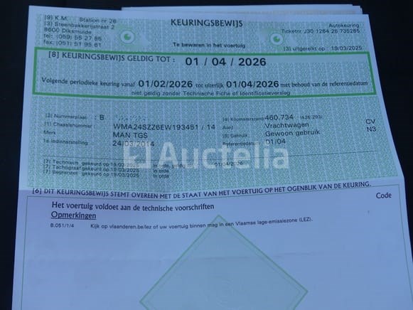 Vuilniswagen Merk: MAN Model: TGS 26.320 Jaar: 2014 Kilometerstand: 484433 Lengte: 998 cm Breedte: 258 cm Hoogte: 110 cm Vermogen: 235 kW Datum van eerste inschrijving: 24-03-14 Brandstof: Diesel Verplaatsing (cc³): 10518 Versnellingsbak: Automatisch MMA: 26.000 kg Eigengewicht: 16050 kg Ophanging: Pneumatisch Airconditioning: Automatisch Radio: Ja Achteruitrijdende radar: Ja Achteruitrijcamera: Ja Aantal toetsen: 1 Aantal zetels: 3 Certificaat van conformiteit: Ja Technisch keuringscertificaat: Ja Technisch keuringscertificaat geldig tot: 01-04-26 Registratiecertificaat Deel 1: Ja Registratiebewijs Deel 2: Ja Vrachtwagengegevensblad: Nee Identificatierapport: Ja Voertuig nog in gebruik (kilometerstand verandert): Nee Chassisnummer: WMA24SZZ6EW193451 Eurostandaard: 5 Intern verkopersnummer (Ref): 1489 Status: Functioneel op Inventarisatiedag Uitgerust met afvalpers Merk: VDK Model: Pusher 4000 Jaar: 2014 Het voertuig startte tijdens de inventarisatie Voertuig rijden op het moment van ophalen Geleverd zonder kenteken Aanbevolen bezoek Opmerkingen: Het voertuig is tijdens de inventarisatie niet grondig geïnspecteerd en kan niet-zichtbare gebreken vertonen De koper zou het perceel vóór zijn veiling hebben bezocht om de logistiek en afhandeling te plannen die nodig zijn voor de inning van zijn aankoop.