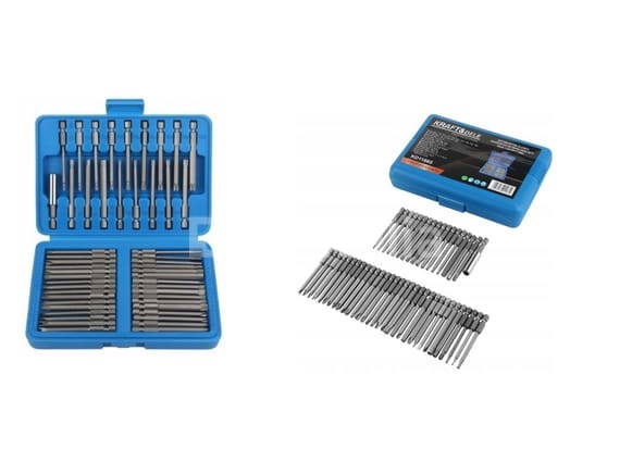 50 bits voor schroevendraaier en slagsleutel in een behuizing Merk: KRAFT&DELE Details: . Torx-bits: T8, T10, T15, T20, T25, T27, T30, T35, T40 . Torx-bits met boring: T10, T15, T20, T25, T30 . Koppeling eindigt: 1, 2, 3 . Torsiebits: 6, 8, 10 . Geritelde bits: M5, M6, M8 . Drie-wing balken: 1, 2, 3, 4 . Vierkante punten: 1, 2 . Twee pennen: 4, 6, 8, 10 mm . Vlakke onderdelen: 4, 5, 6 mm . Phillips Kruispunten: PH1, PH2 . Pozidriv kruispunten: PZ1, PZ2 . Inbusbits met boring: 2, 2,5, 3, 4, 5, 6 mm . Hex-bits: 4, 5, 6 mm Conditie: Nieuw Scheepvaart: Tarief A