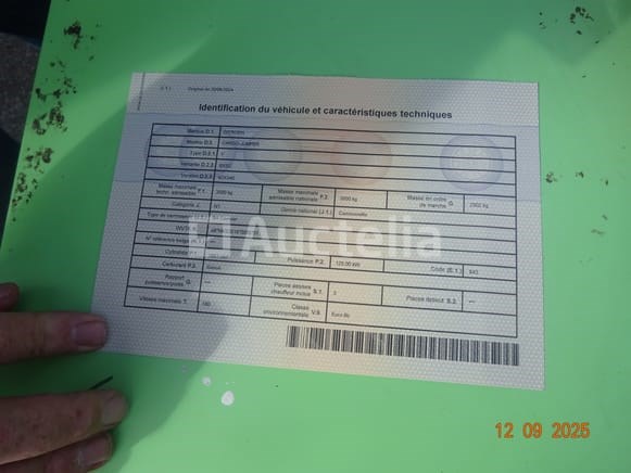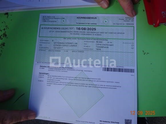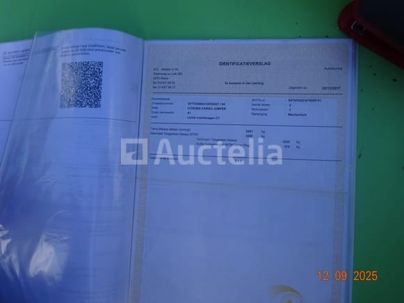 1 busje Merk: Citroën Type: Jumper Aluminium bestelwagencarrosserie Geregistreerd als 2-FTP-120 1e inschrijving: 13/12/2017 Hub: 1997cc KW: 120 Euro 6B Achterste voet 2 onderdelen van voertuigkentekenkaarten Technisch controleblad Certificaat van conformiteit 2 achterdeuren Kleur: wit KM op de kilometerteller 141,428 3 voorstoelen Radio Airconditioning 6-versnellingsbak 2 sleutels Achterste voet Roterend voertuig tijdens de taxatie