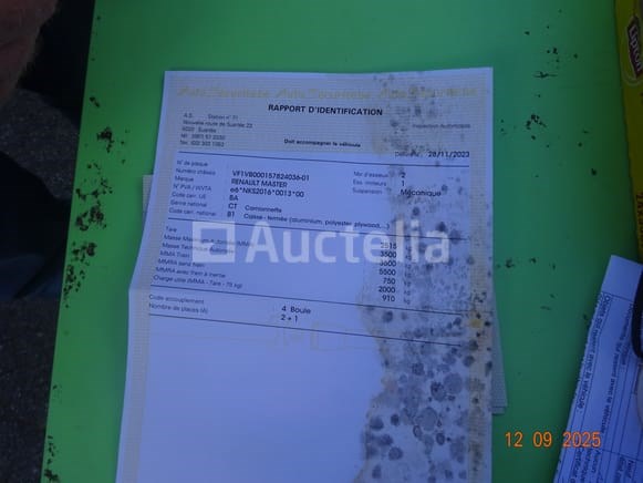 1 busje Merk: Renault Type: Master's Aluminium bestelwagencarrosserie Geregistreerd 2-EMS-451 1e inschrijving 16/05/2017 2 onderdelen van voertuigkentekenkaarten Certificaat van conformiteit Technisch controleblad 154,779 km op de kilometerteller 2 sleutels Hub: 2299cc 107 KW Euro 6B Achterste voet 2 achterdeuren Aanhangerkoppeling 6-versnellingsbak Airconditioning GPS Roterend voertuig tijdens de taxatie