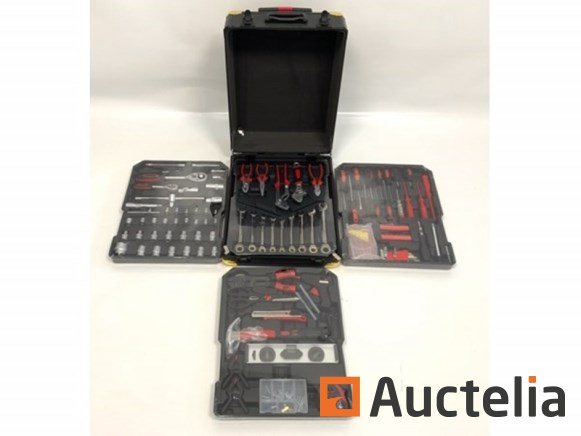 Aluminium: ja; met inhoud: ja; afmeting L: 210 mm; afmeting B: 370 mm; afmeting H: 520 mm; omschrijving: 186 delig; w.o. steek- ringsleutel met ratel; diverse tangen; doppenset met ratel; diverse schroevendraaiers; precisieschroevendraaiers; inbussleutel; diverse bits; klauwhamer; krimptang; schaar; rolmaat; waterpas; hetelijmpistool; kunststof klemmen; tapijtmes;