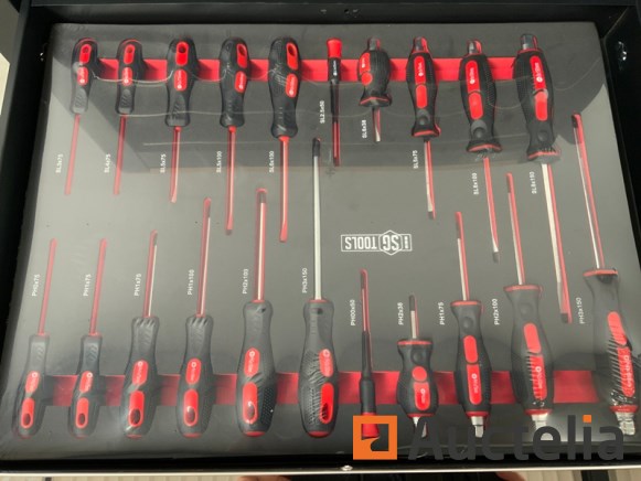 258 delig; schroevendraaiers; bitset; tangen; sleutels; etc; zwenkwielen met rem; 7 lades; 6 gevuld; 760x460x980mm 80KG