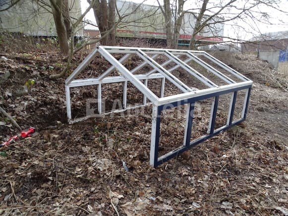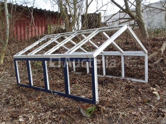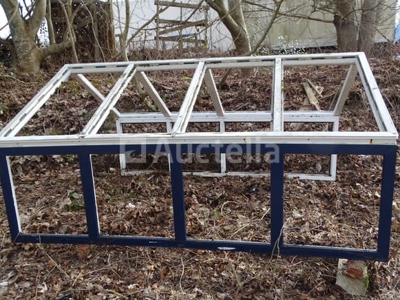 Kassen- / verandadak (te installeren op een lage muur of iets anders) Dimensie: . Lengte: +/- 2 m 80 . Breedte: +/- 2 m 34 . Zijhoogte: +/- 86 cm . Centrale hoogte: +/- 1 m 45 Geleverd zonder glas, zonder accessoires Staat: zoals op de foto's Opmerking: . Aanbevolen bezoek . Bij het laden op een aanhanger, zorg dan voor 3 balken van 2 m 50 . Zorg voor personeel voor het laden . Geen garantie, geen inruil, geen ruil