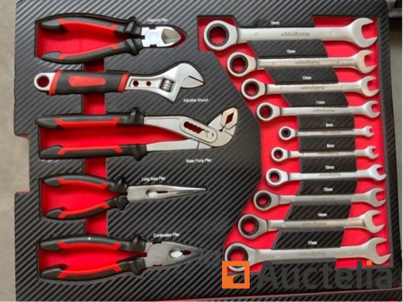 Aluminium: ja; met inhoud: ja; omschrijving: 238 delig; w.o. steek- ringsleutel met ratel; diverse tangen; doppenset met ratel; diverse schroevendraaiers; precisieschroevendraaiers; inbussleutel; diverse bits; klauwhamer; schaar; rolmaat; waterpas; tapijtmes;