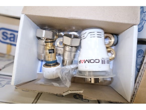 Set van verschillende onderdelen en fittingen voor verwarming