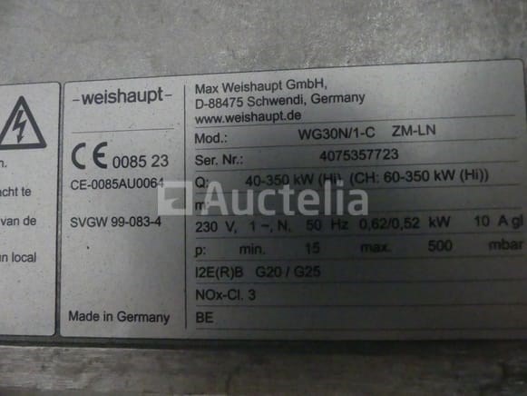 Gasbrander voor ketel Merk: Weishaupt Conditie: Niet getest Aanbevolen bezoek