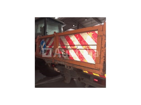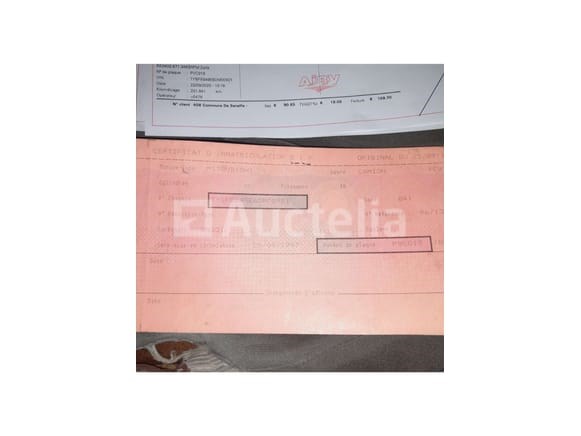 Merk: Mitsubishi Model: Canter. Jaar van eerste registratie: 25 september 1997. Kilometerstand: 231.841 km (volgens het certificaat van 22/09/2025) of 231.857 km (volgens de analoge kilometerteller die op de foto zichtbaar is). Chassisnummer (VIN): TYBFE649E6DM00921. Kenteken: PVC019. Categorie: Vrachtwagen (N2). Type kantelaar: Uitgerust met een oranje kantelblok met metalen zijpanelen. Veiligheidsborden: * Rode en witte reflecterende strips aan de voor- en achterkant. Richtingsbord (blauwe pijl) aan de achterkant. Oranje knipperende lichten op het taxidak. Markeringen: Deuren