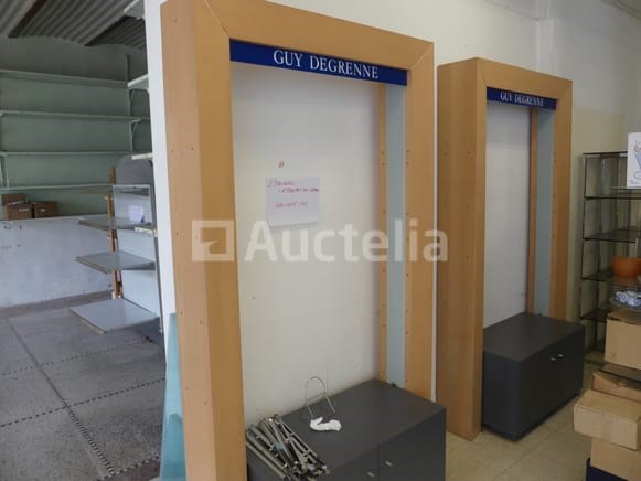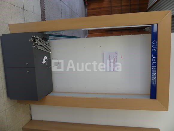 Meubelpresentatie Lengte: 120 cm Breedte: 45 cm Hoogte: 215 cm Hoeveelheid: 2 Met glazen planken Ter plaatse te worden afgebroken