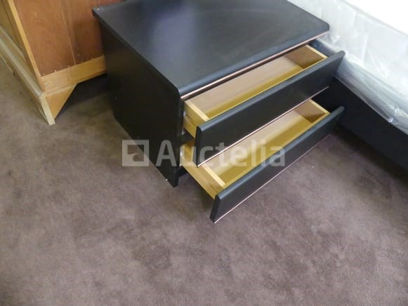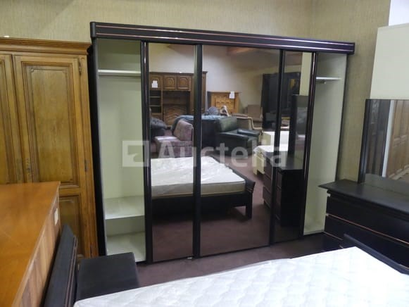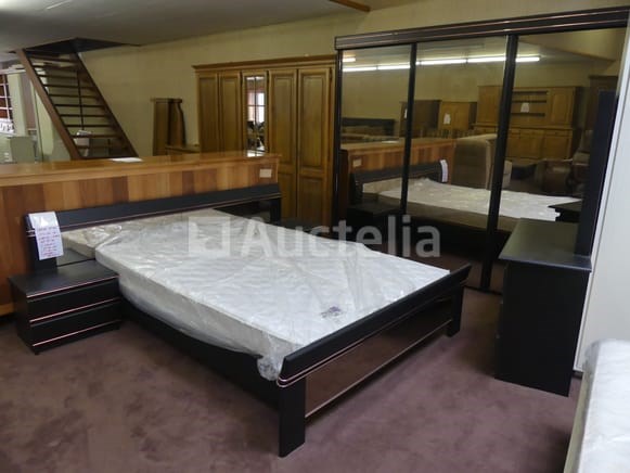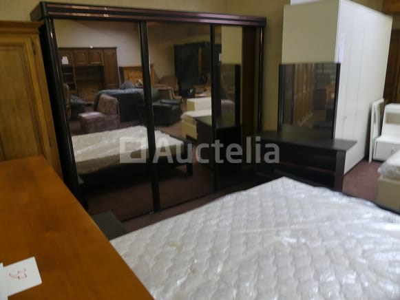 Compositie: 1 kast met 3 schuifdeuren van 250x60x210 cm 1 ladekast + spiegel van 107x40x75 cm 2 nachtkastjes van 53x38x40 cm 1 bed van 140x200 1 bedbodem + matras Opmerkingen: Stuk grond op de eerste verdieping via de trap