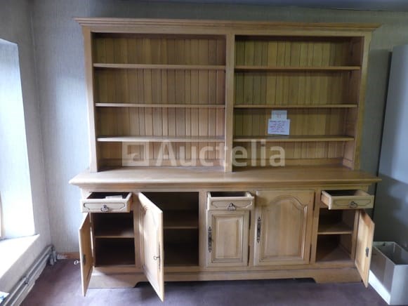 Ladekast 5 deuren, 3 lades Ladekastafmetingen: 255x57x100 cm Plankafmetingen: 255x35x128 cm Opmerkingen: Stuk grond op de eerste verdieping via de trap