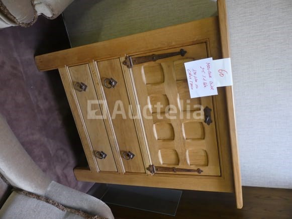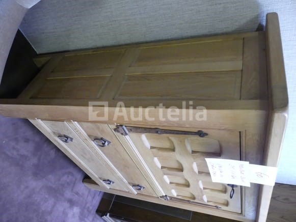 Lengte: 130 cm Breedte: 50 cm Hoogte: 140 cm 2 lades, 1 bovendeur. Opmerkingen: Stuk grond op de eerste verdieping via de trap