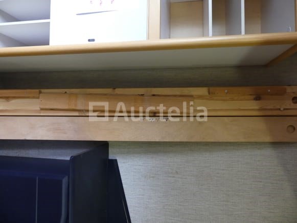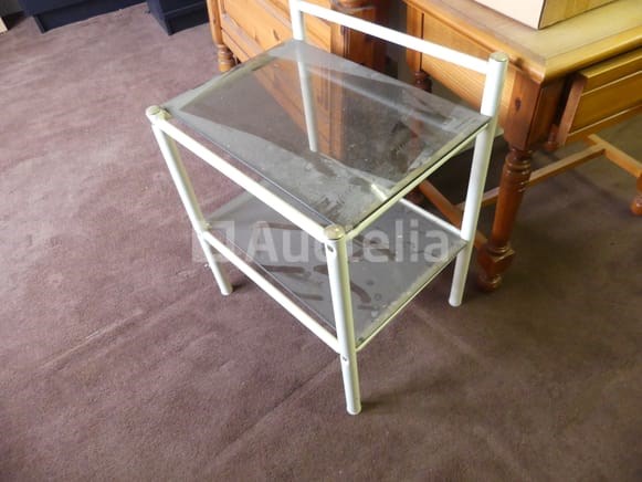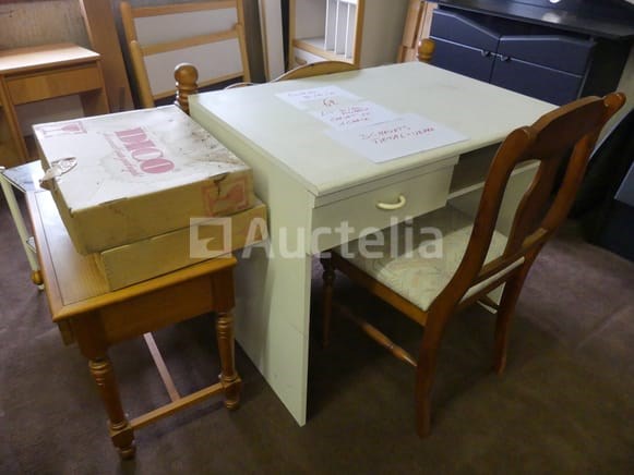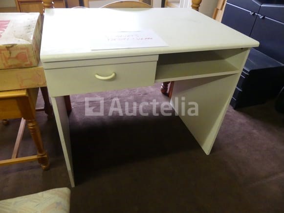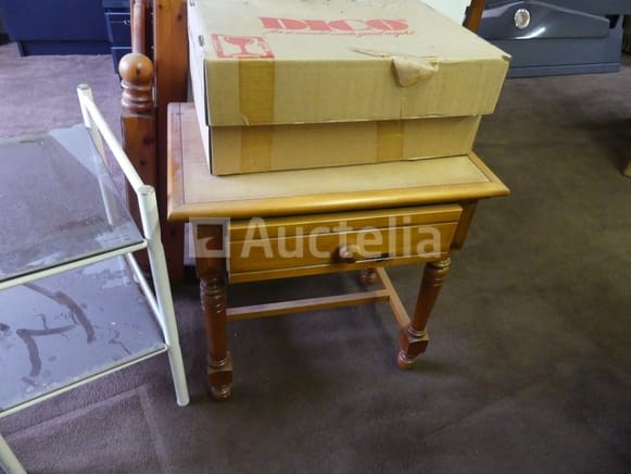 Compositie: 1 bureau van 90x65x80 cm 1 bed van 90x200 in massief grenen (geleverd zonder bedvoet) 1 nachtkastje, 1 lade 1 stoel +/-3 metalen en glazen nachtkastjes Opmerkingen: Stuk grond op de eerste verdieping via de trap
