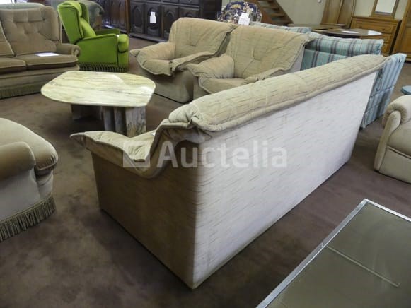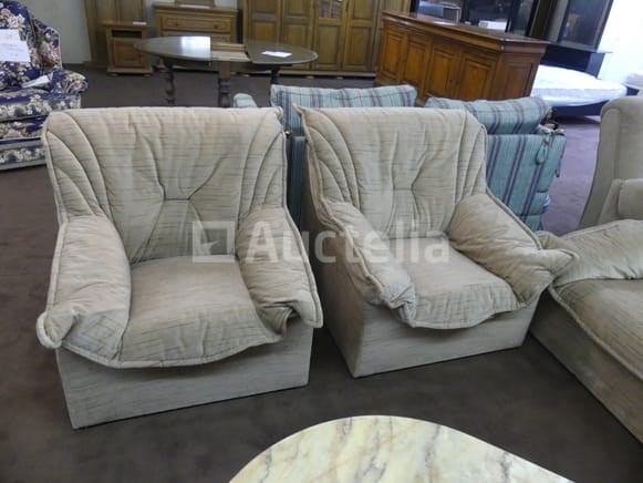 1 3-persoons bank: breedte 190 cm 2 fauteuils met één zitplaats: 80 cm Opmerkingen: Stuk grond op de eerste verdieping via de trap