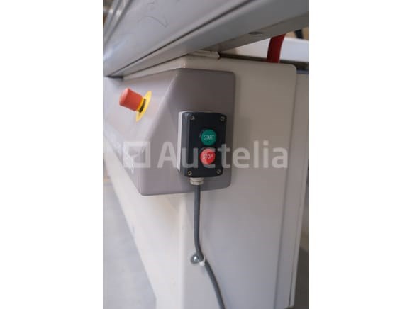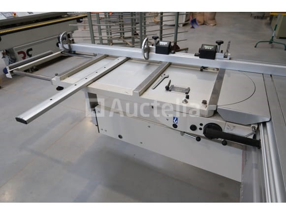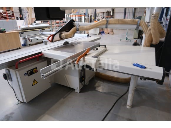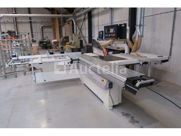 Schuiftafelzaag Merk: SCM Model: Si400 EP-klasse Spanning: 400V driefasig Lengte: 350 cm Breedte: 420 cm Hoogte: 180 cm Vermogen: 7 kW Status: Functioneel op Inventarisatiedag Niet inbegrepen: Extractiespuit Uitgerust met numerieke besturing Kantelbaar blad Snijblad Elektronische stoplezer Opmerkingen: Aanbevolen bezoek