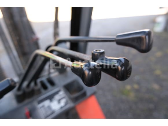 Vorkheftruck Merk: Toyota Model: 02-7FD25 Jaar: 2004 Openingstijden: 7008 Breedte: 115 cm Hoogte: 215 cm Gewicht: 3970 kg Voortstuwing: Thermisch Draagvermogen: 2500 kg Vermogen: 49 kW Masttype: Triplex Status: Functioneel op Inventarisatiedag Uitgerust met zijwaartse schakeling Opmerkingen: Aanbevolen bezoek