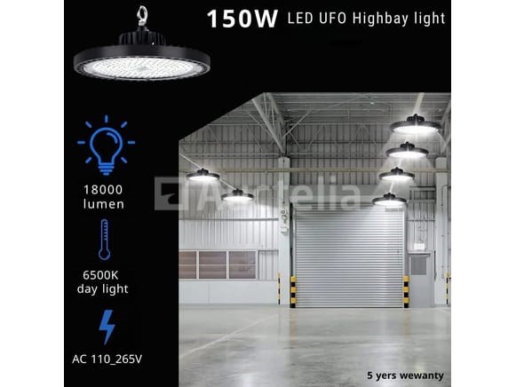 8 x highbay ufo 150w – pro design – instelbaar vermogen (60% / 80% / 100%) – 6500k koel wit