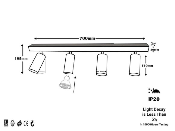 3 x gu10 plafondspots – 4 verstelbare spots – aluminium – ip20
