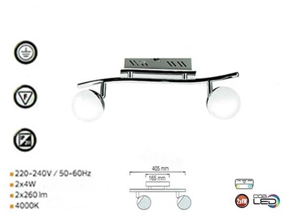 4 x led-plafondlampen – dubbele spotlights – 2 × 4w – 4000k neutraal wit – ip20 – model hl7182l