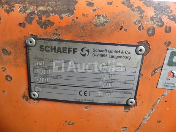 Wielgraafmachine Merk: Schaeff Model: HML31 Jaar: 1999 Lengte: 570 cm Breedte: 245 cm Hoogte: 350 cm Gewicht: 8120 kg Vermogen: 53 kW Status: Functioneel op Inventarisatiedag Voorzien met: 1 Montabert 1 x 25 cm container 1 bak van 80 cm (nooit gebruikt) 1 reinigingstank Bekende defecten: Beschadigde linker voorbanden Uurmeter en elektriciteit worden herzien Opmerkingen: On-site testen mogelijk Aanbevolen bezoek