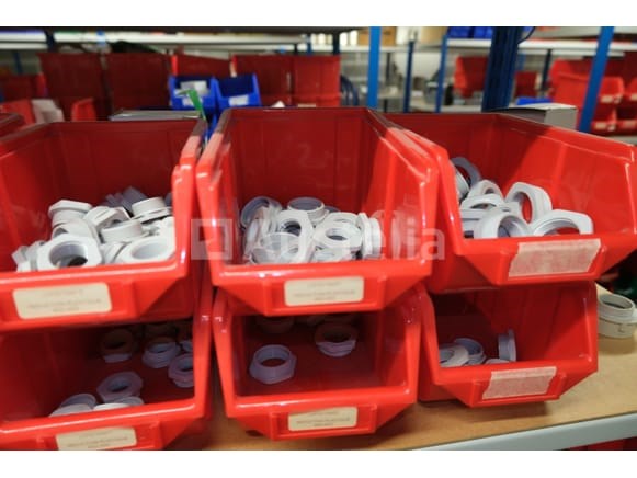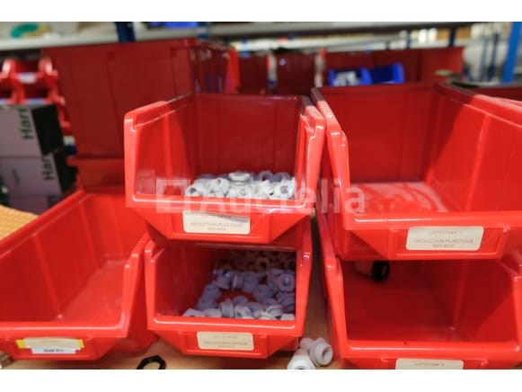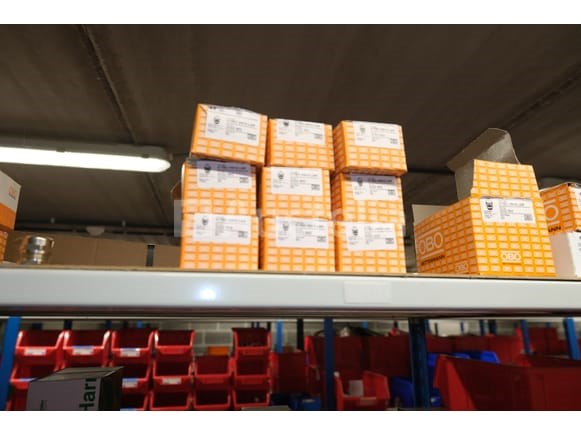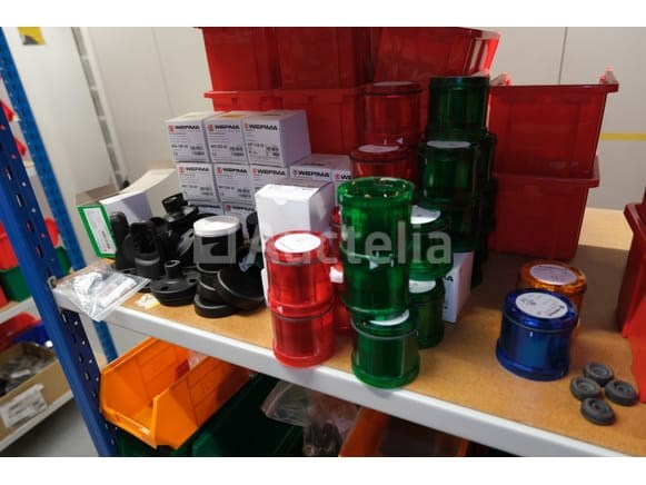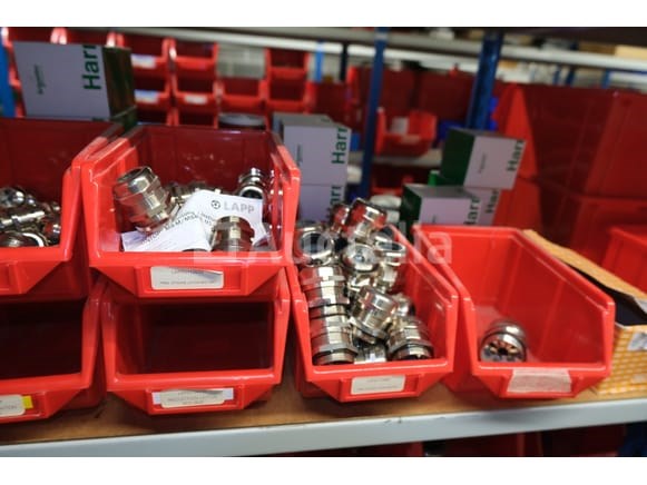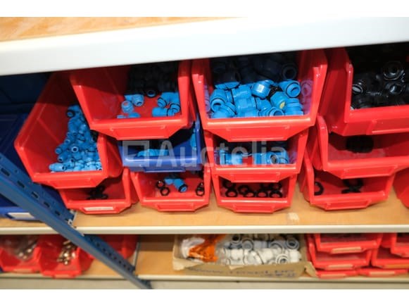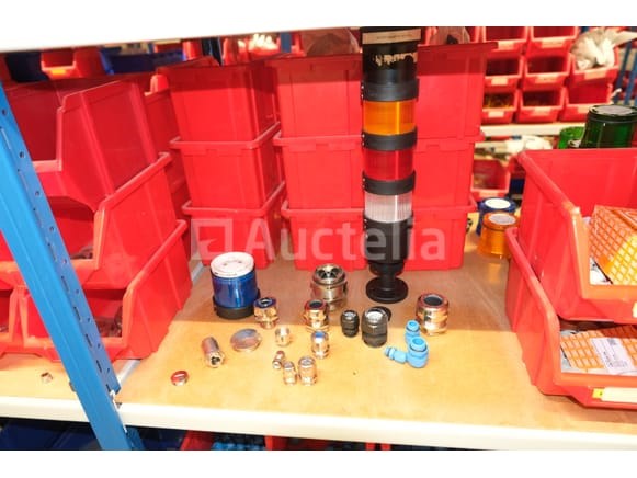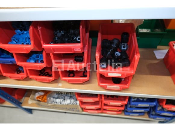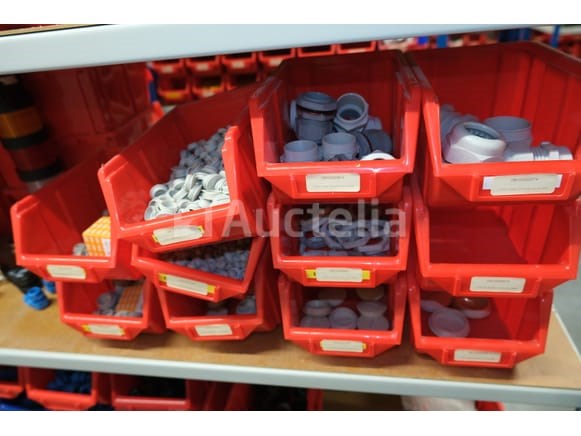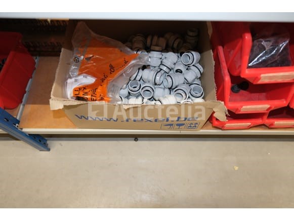 Inbegrepen: Opbergvakken Niet inbegrepen: Rekplank Waterdichte stekkers, fittingen en diverse accessoires Hoeveelheid: +/- 100 bakken Lot verdeeld op een rekplank Aanbevolen bezoek