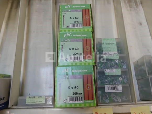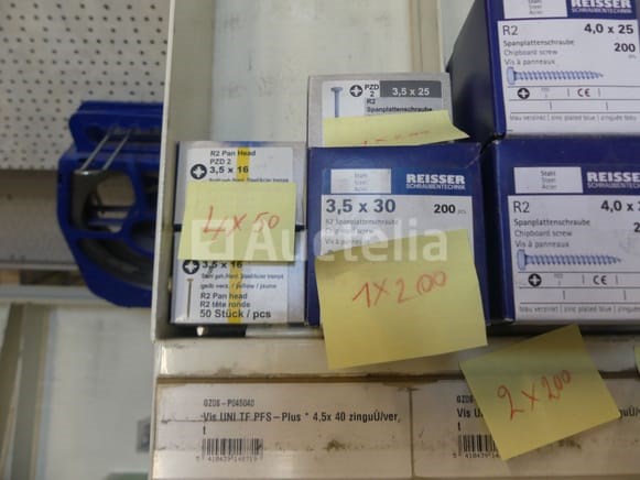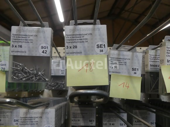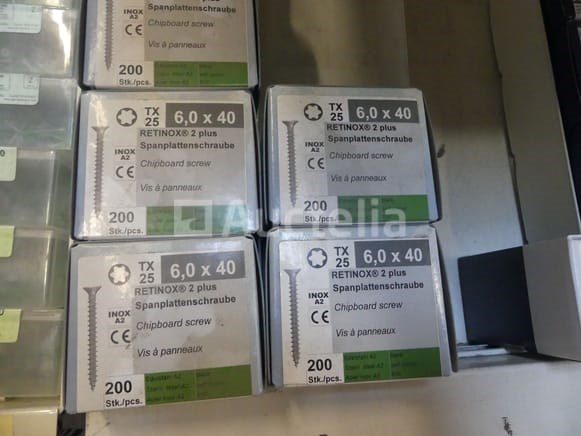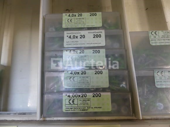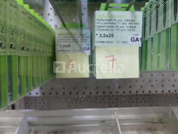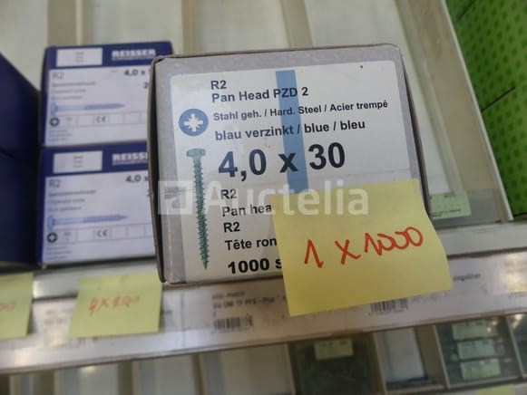Roestvrij staal en stalen schroeven Verschillende modellen, lengtes en referenties Aantal: +- 450 dozen Perceel verspreid over een straal van 2 lineaire meters Opmerkingen: Aanbevolen bezoek