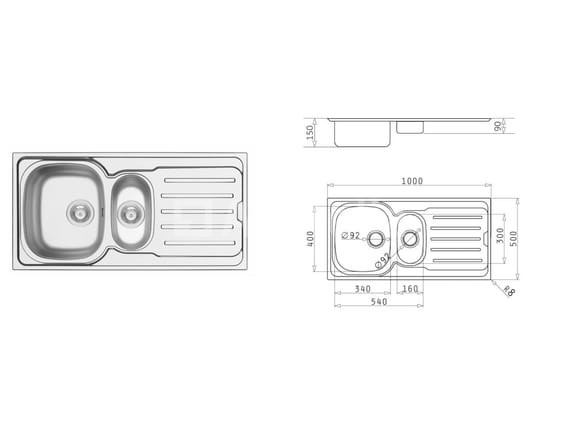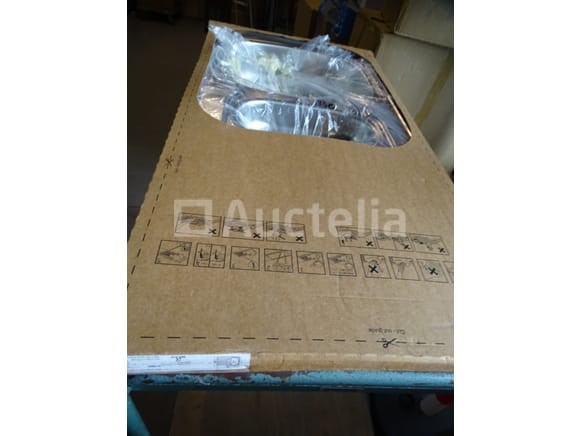 NIEUWE roestvrijstalen gootsteen (bak + afvoerbak) Merk: VAN MARCKE Model: VERA Dimensie: . Totale breedte: 50 cm . Totale lengte: 1 m Conditie: Nieuw Scheepvaart: Tarief D