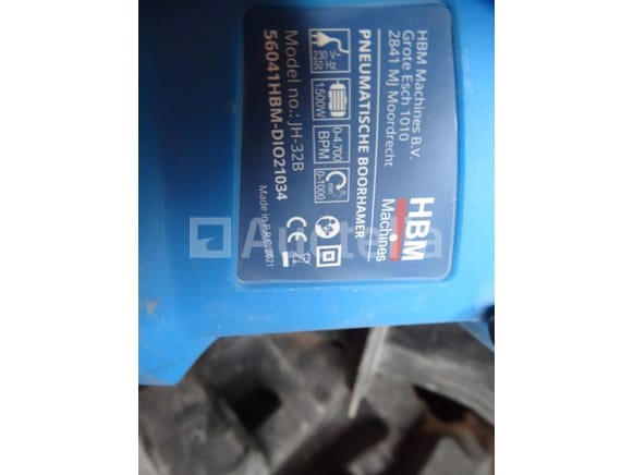 Chipping hammer in zijn geval Merk: HBM Model: JH-32B Vermogen: 1500 W Jaar: 2021 Geleverd met 2 boorbits en 2 beitels Staat: Functioneel volgens de verkoper Scheepvaart: Tarief B
