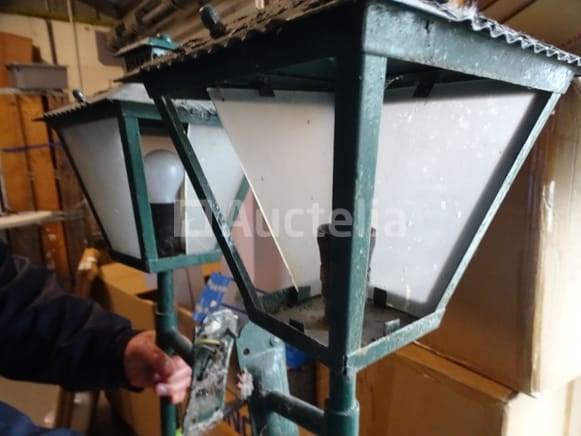Antieke VINTAGE wandlamp Aantal: 2 stuks Dimensie: . Hoogte: 80 cm . Dakbasis: 25 x 25 cm Opmerking: Er ontbreekt wat glazuur of moet vervangen worden Scheepvaart: Tarief D