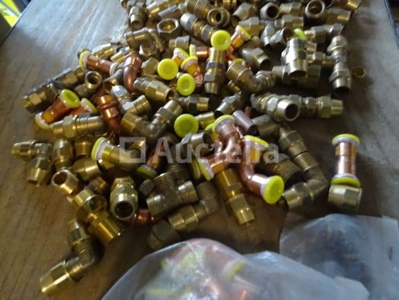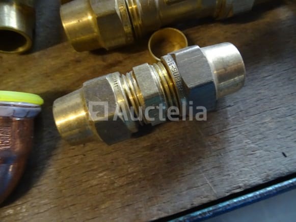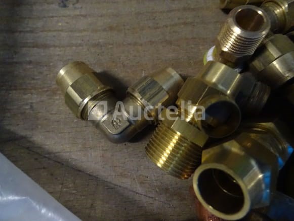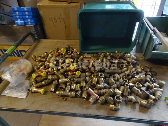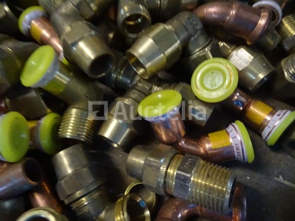 Verschillende messing fittingen in een pvc-bak