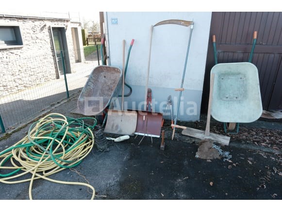 Conditie: Niet getest Kruiwagens Tuinslangen Keldervacuümpomp Diverse handgereedschappen