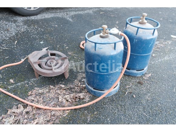 Driepoot-gasbrander Merk: Tripatte Conditie: Niet getest + 2 gasflessen (afvoeren)