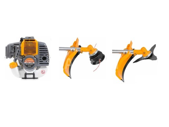 Professionele benzine borstelsnijder Merk: POWERMAT Model: PM0638 Vermogen: 2000 W 49cc tweetaktmotor Effectief vermogen: 4,4 kW / 6 HP Conditie: Nieuw Scheepvaart: Tarief D