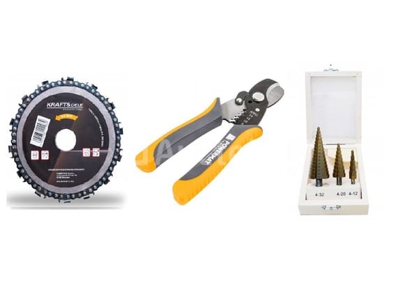Schijf met kettingzaagketting 125 mm 22,2 mm Merk: KRAFT&DELE Conditie: Nieuw Knip- en striptangen Merk: POWERMAT Conditie: Nieuw Titanium HSS bit ingesteld 4-32mm . 4-12mm . 4-20 mm . 4-32 mm Conditie: Nieuw Scheepvaart: Tarief A