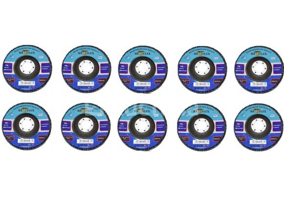 Metalen platen Merk: MET-FLEX Aantal: 10 stuks Kenmerken: . Buitendiameter: 125 mm . Binnendiameter: 22,23 mm . Maximale rotatiesnelheid: 12.200 tpm . Granulatie: 40 . Doel: voor gewone en roestvrij staal Conditie: Nieuw Scheepvaart: Tarief A