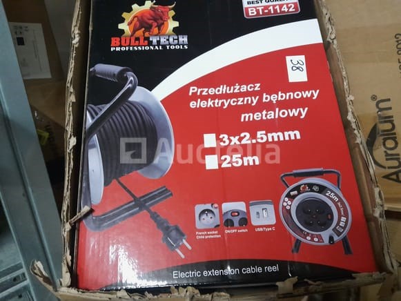 Elektrische ontwringer 25 m Merk: BULLTECH Vermogen: 3 G x 2,5 mm Met verschillende USB-aansluitingen Conditie: Nieuw Scheepvaart: Tarief A