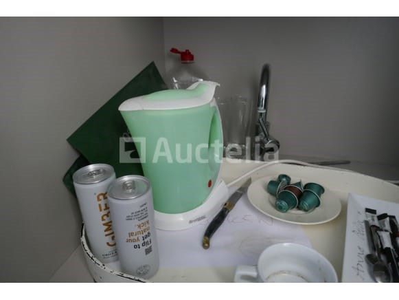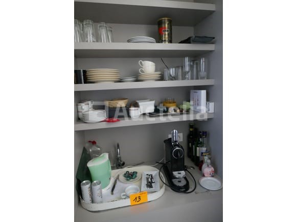 Espressomachine - eetborden - koffiekopjes - glazen - waterkoker - bijzettafeltje - enz…