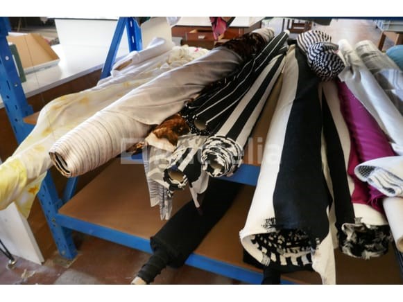 Partij diverse rollen met kleurijke stoffen voor kledij ( zie foto's voor aantal ) * inhoud rekken