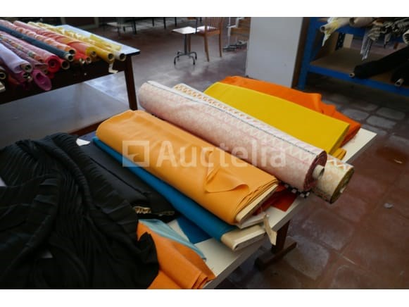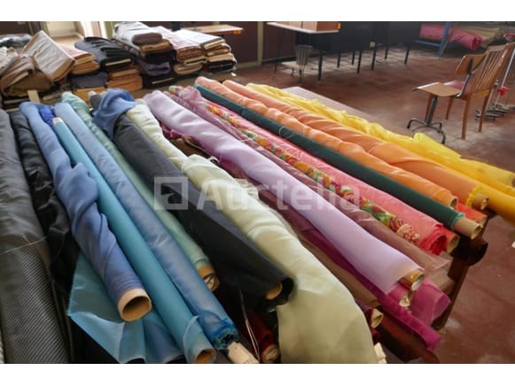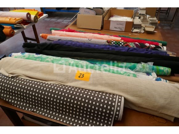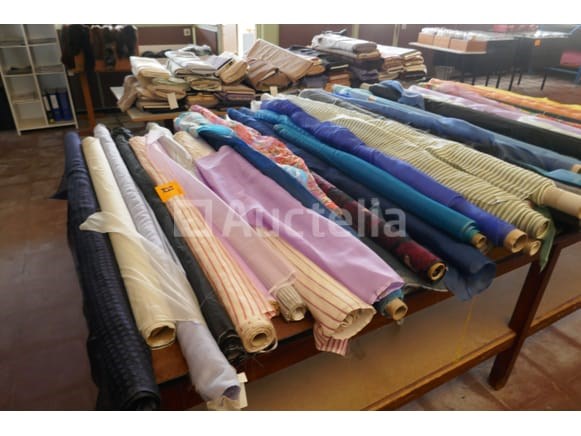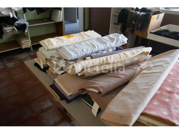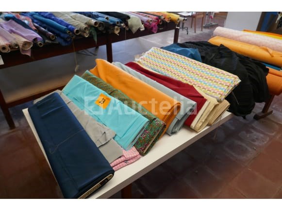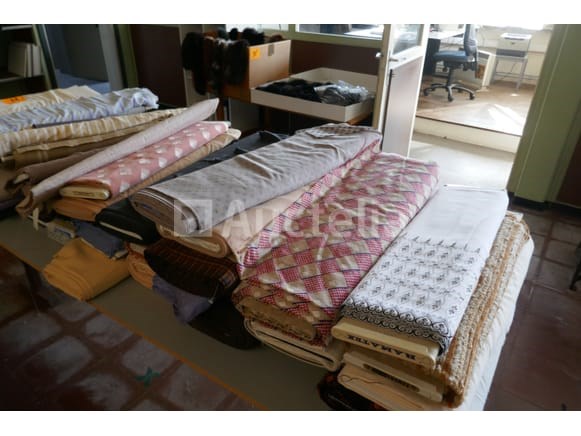 Partij diverse rollen met kleurijke stoffen voor kledij ( zie foto's voor aantal ) *liggende op de tafels voorraan